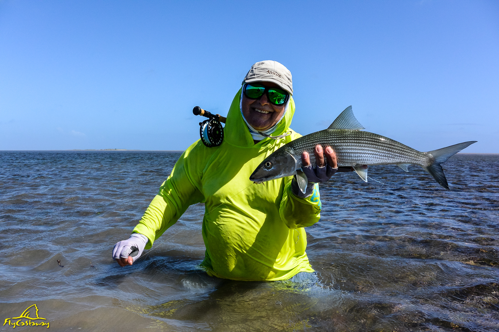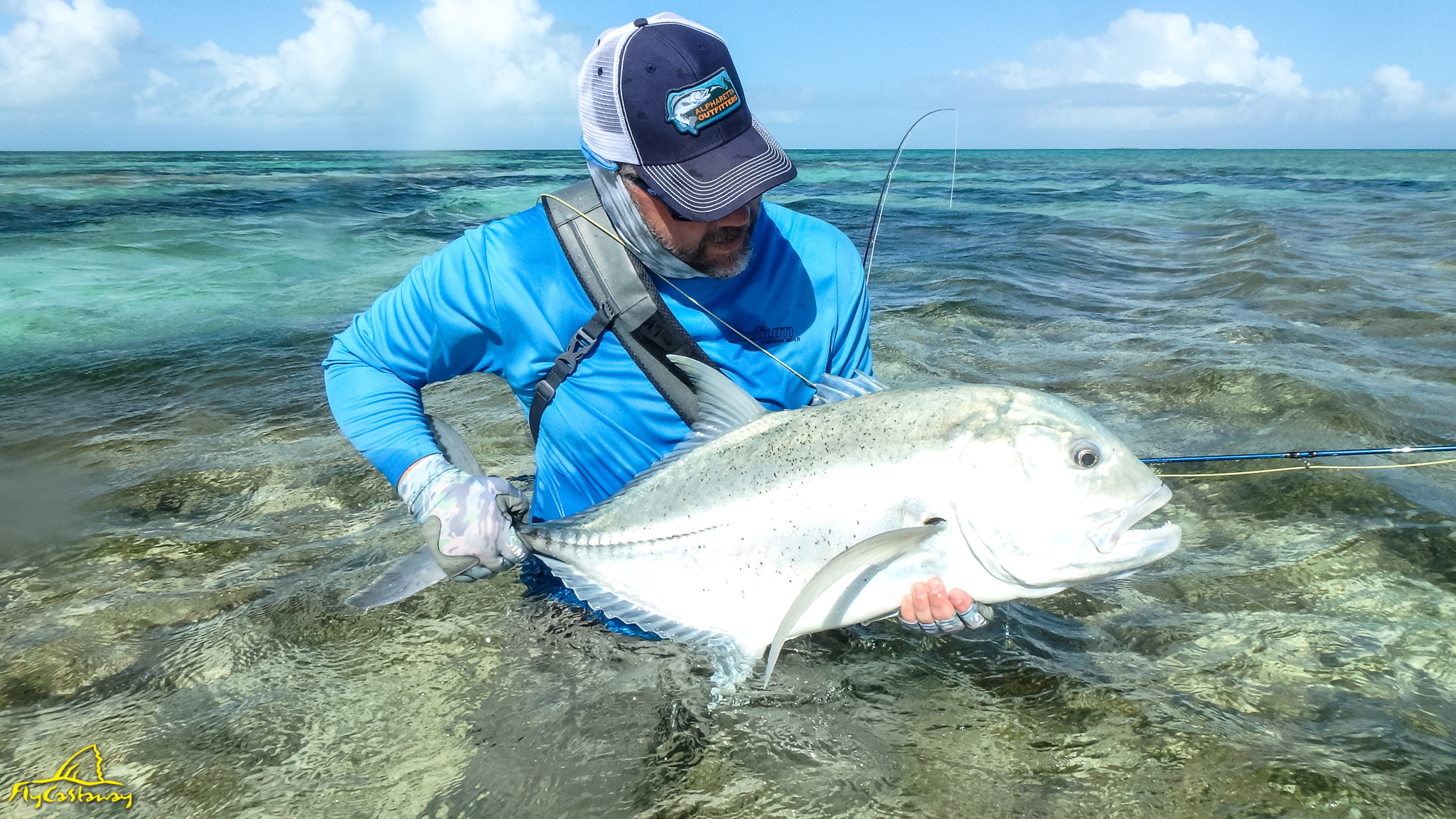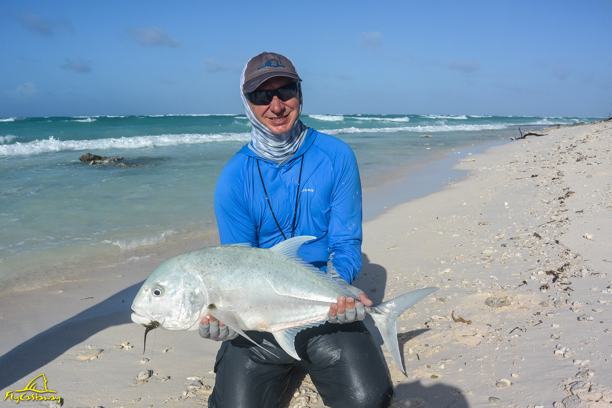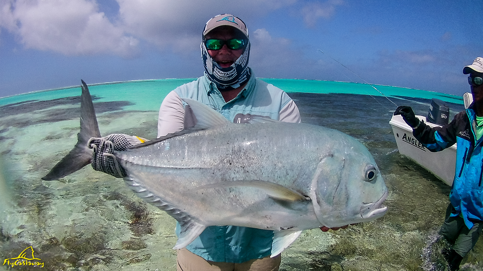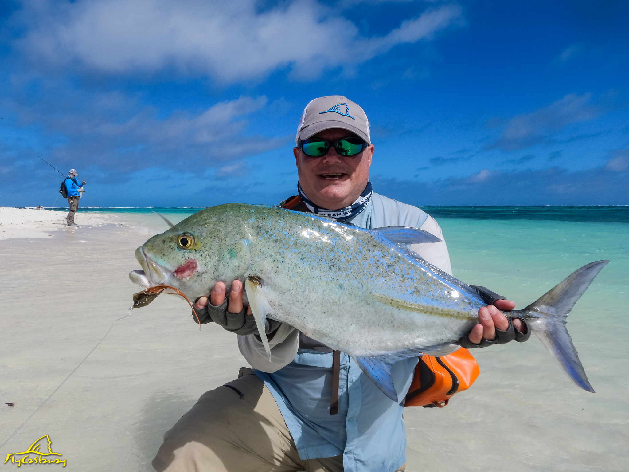 With the afternoon high water our guests drifted over coral heads and got to tussle with many reef dwelling fish as the species count for the week was really good. Father and son Jonathan and Thomas had a great week, which saw father Tom hook a massive GT on Day 1 only to lose it at the end of the fight as the fish cut him off. Thomas managed to land a Moustache triggerfish on the 4th day and son Jonathan managed to convert his shots landing 2 fish with the biggest being 104cm. Another Father and son pairing Stephan and Benjamin had a good week as they both hooked numerous GTs with son Benjamin loosing 3 in 1 day. First time salt water fly fishing John had a start to remember as he landed a 108cm GT on the first day of the week and went on to land another one. Erik was unlucky with the GTs this week, hooking a few but none coming to hand, but he enjoyed some great bone fishing with a few solid grouper and snapper species. Doug got his GT on the 3rd day landing a fin perfect fish. Terrel hooked 5 GTs before landing his 1st on fly! Fishing buddies Donald and Bill had a fantastic week which saw Bill achieving a Trigger slam on the first day of the week – a Moustache triggerfish, a nice GT and a bonefish to top it off. It got even better for him as after losing 3 GTs in a day himself and Donald managed to double up on a pair of GTs in the deep blue during the final afternoon session. Donald had a great week as he also got a trigger slam – a yellow margin triggerfish, a nice GT and a bone. He also managed to cap off his week with another GT and a moustache triggerfish!