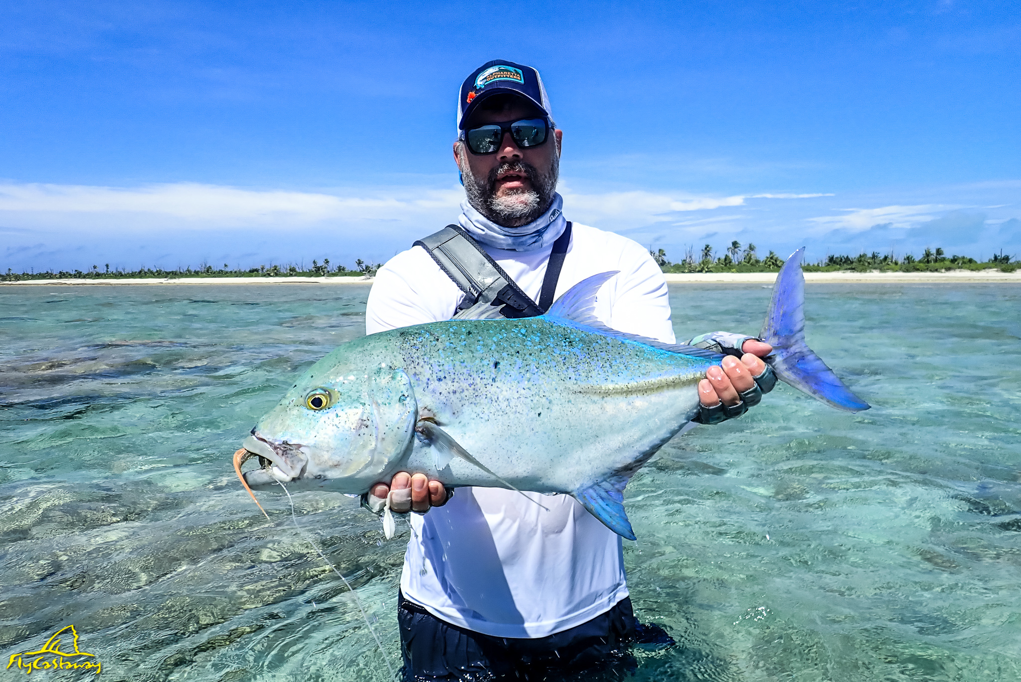 This week on Farquhar we welcome a group of 10 guests from the U.S to the atoll for the 7th and final week of the the season. After a short flight from Mahe our guests were greeted by the Guide team and guest house staff and then shown to their accommodation. After settling in we got straight into it with a safety briefing and a tackle setup to ensure everyone was ready for a solid weeks fishing. This week on Farquhar we are into full moon spring tides making the tidal range huge. The large volumes of water being brought onto and off the atoll ensures loads of cool water brought in from the ocean. With mid-morning low tides in the beginning of the week moving to midday lows gave our guests a chance to fish the drop as well as the push. High water in the afternoon gave our guests options to sample the rich diversity of species this atoll has to offer through targeting coral heads as well as looking for GTs by walking an island or sand spit, the chance to go dredging or sail fishing was also an option and proved to be worth it as on the last day 2 GTs were caught during a blue water session.