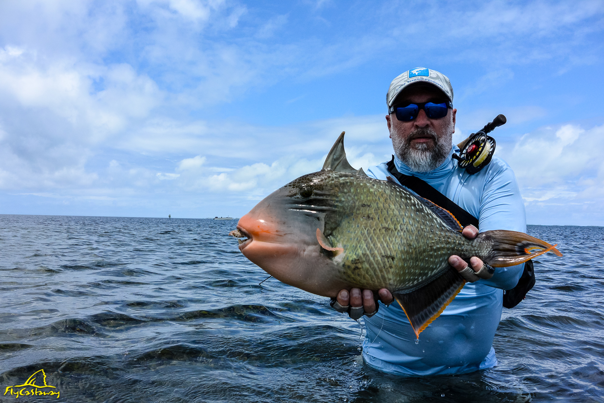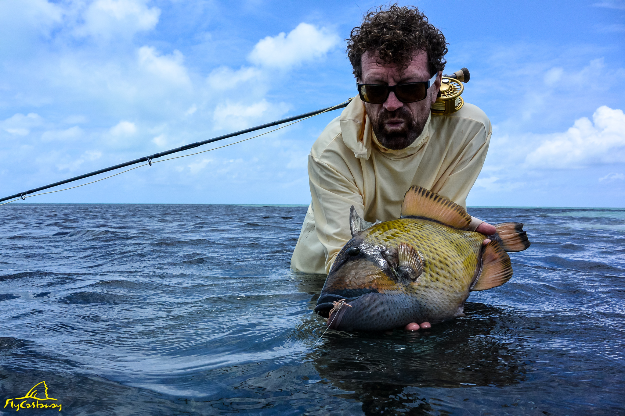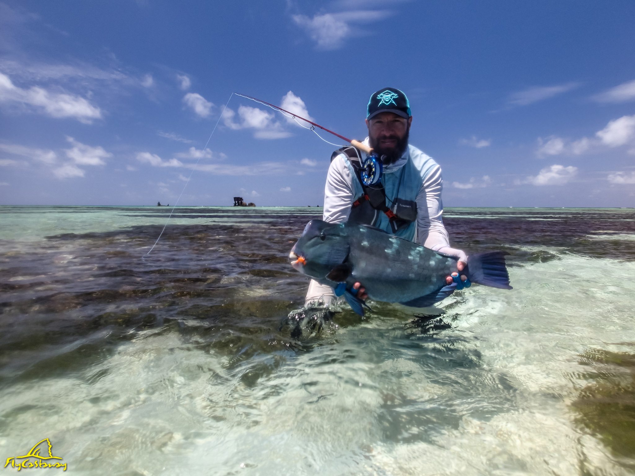 The Bumpies also provided good chances throughout the week, in the end we landed 4 of the 7 we had hooked. David landed his first and second Bumphead Parrotfish on fly on the same day and when he managed to land a GT as well as a Bonefish before the day was done he had completed our Bumpy Slam. Congrats! Matvey and Andrey also managed to hook and land their first Bumphead Parrotfish on the fly. Well done guys! The Triggers were busy on the flats this week, our managing to hook 7 but only a beautiful Yellow Margin caught by Alexander and a strong Titan landed by Gennadii. Gennadii’s fish was part of our second Slam for the week, the other two species on the day including a Bonefish and GT. Great job!