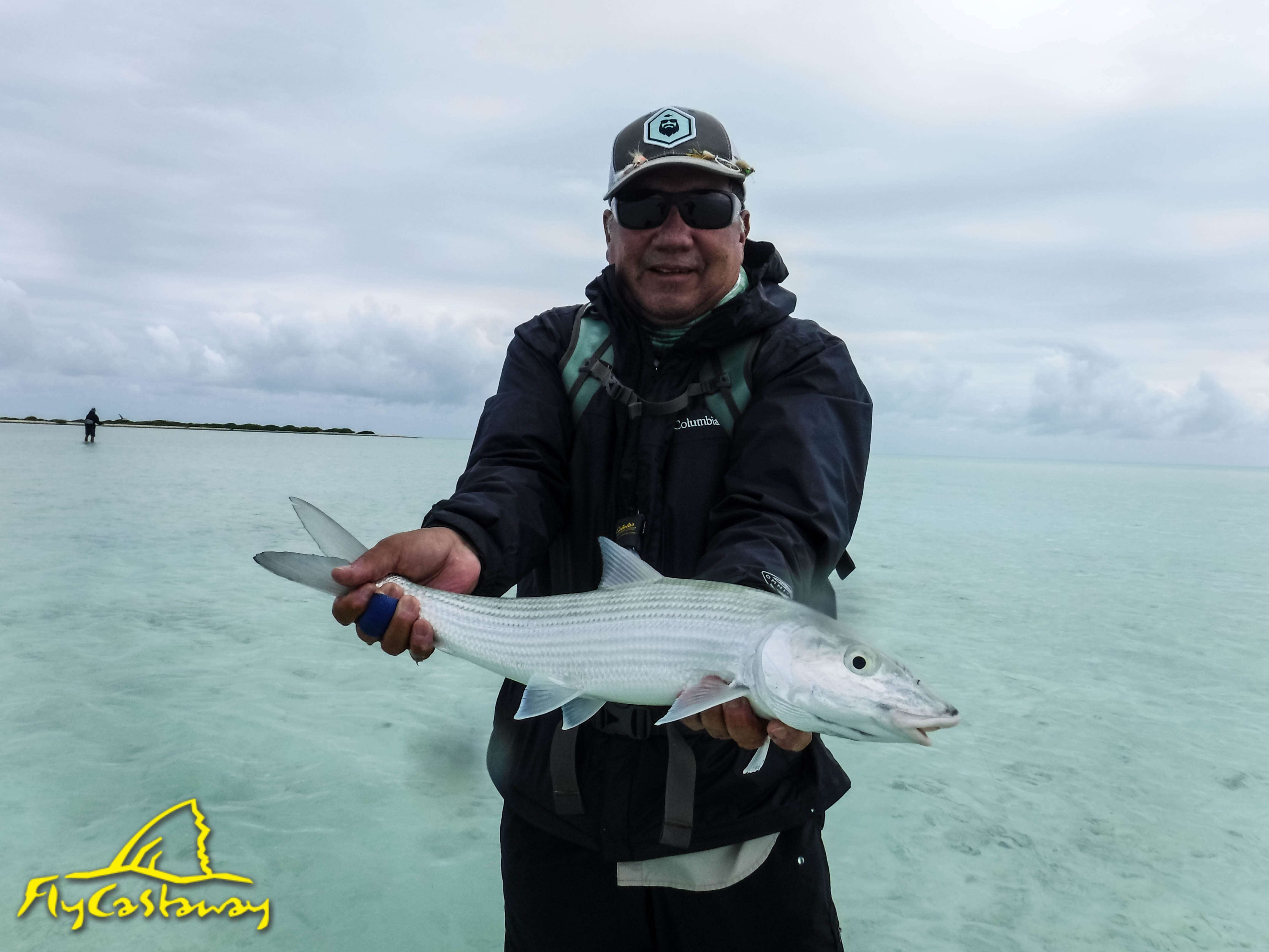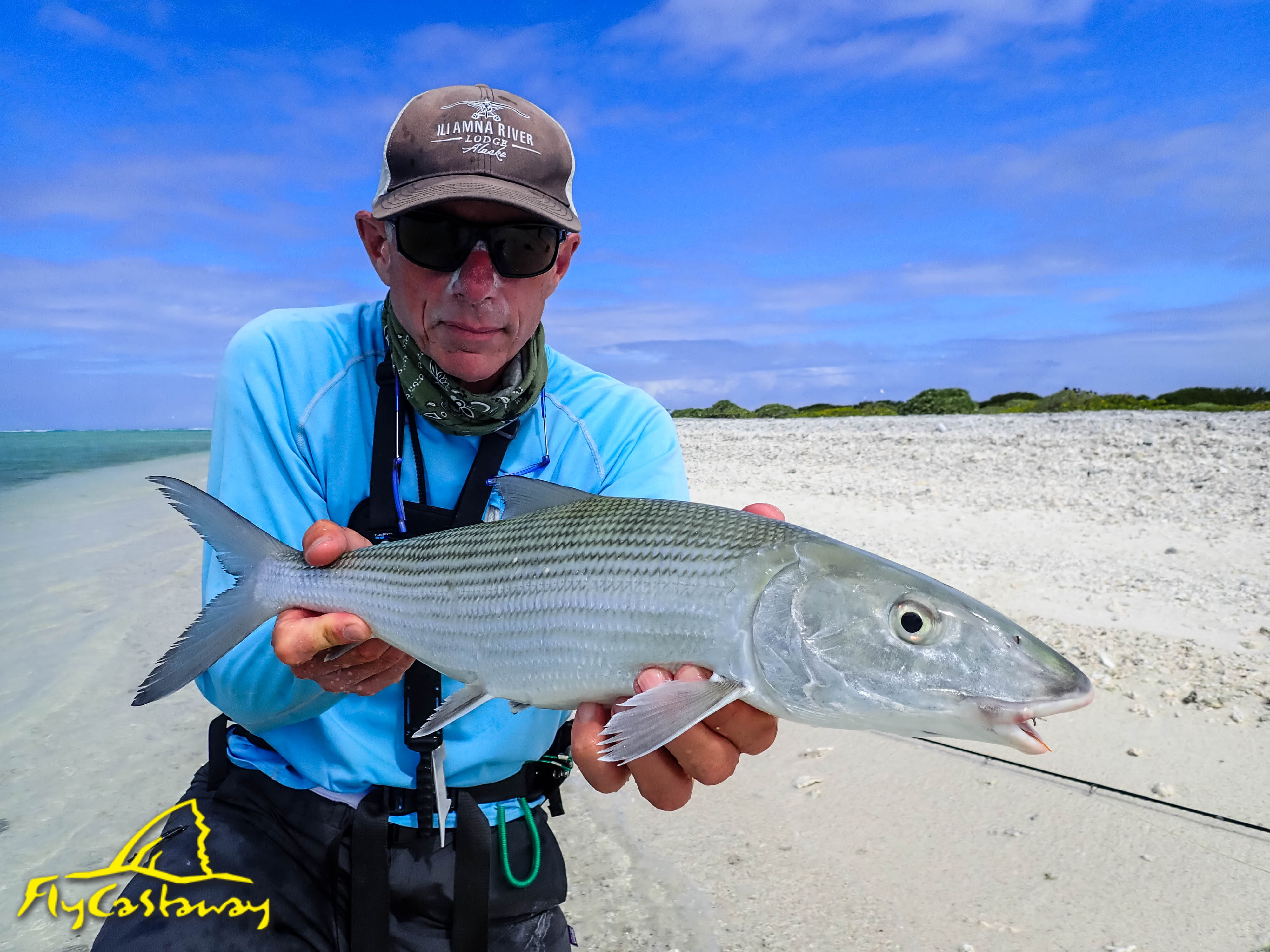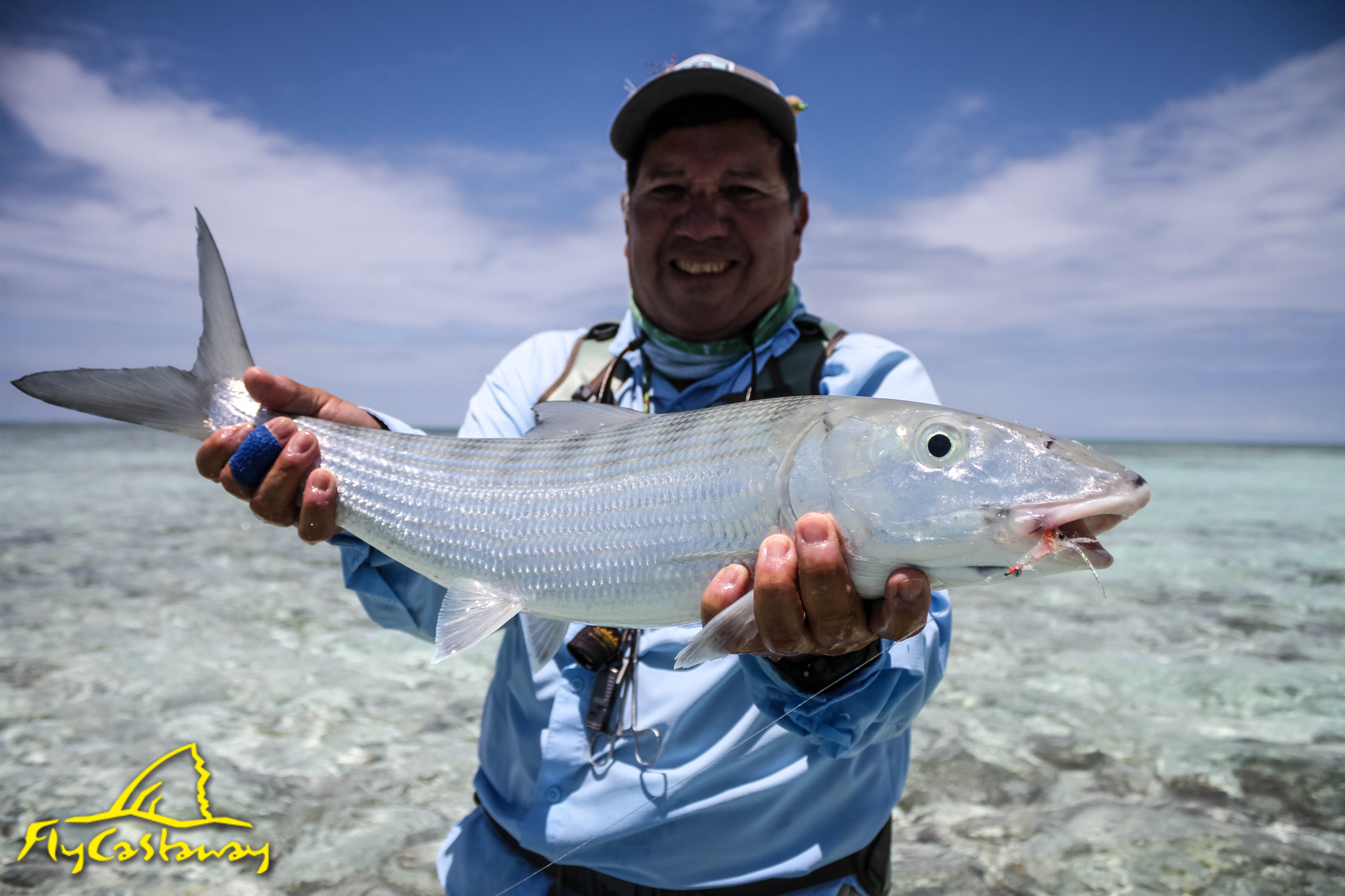 Despite having some rough weather around and losing a day to very high winds which are unseasonal for this time of year, the guests still had some great sessions targeting the atoll’s large and numerous Bonefish. All our guests all managed to land good numbers in shallow water, the average size for the week a very credible 6lbs. Some notable catches for the week included Allen’s 7,5lb Bone as well as Ray and Kirk’s Personal Best Bones of 8lb each.