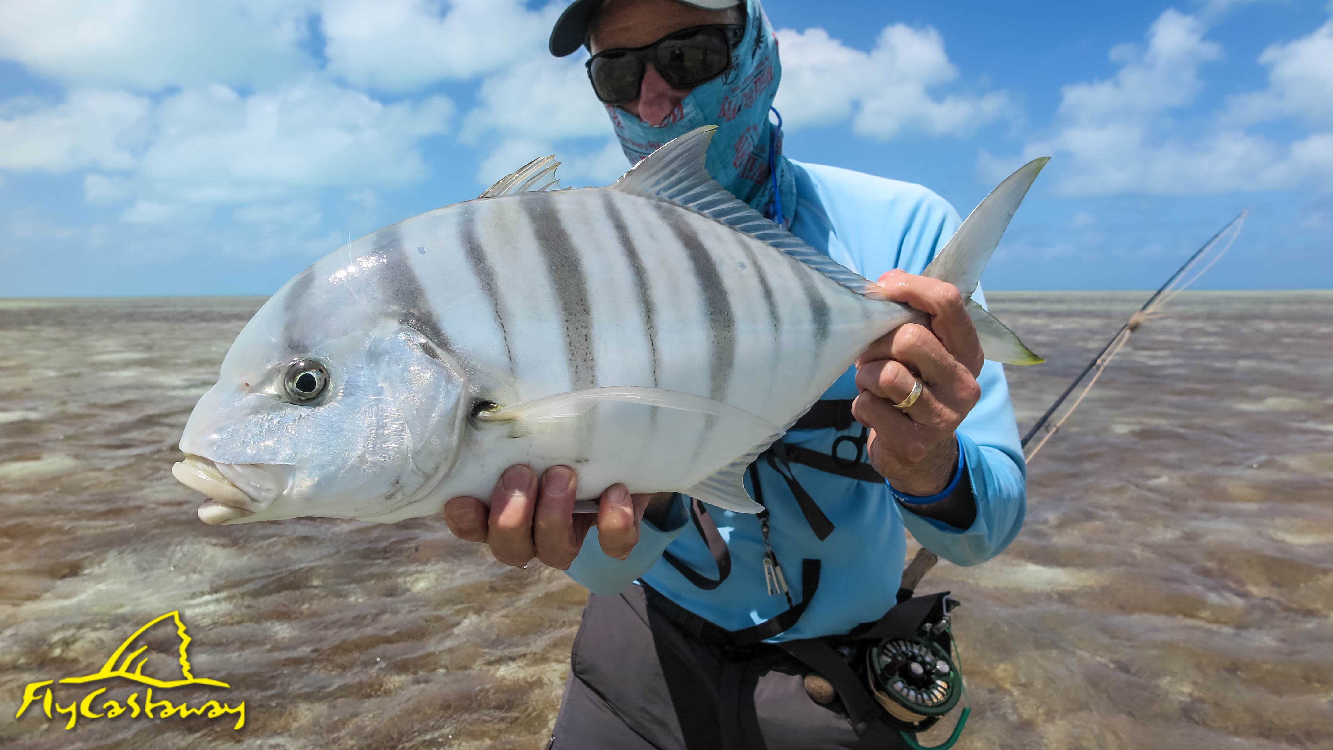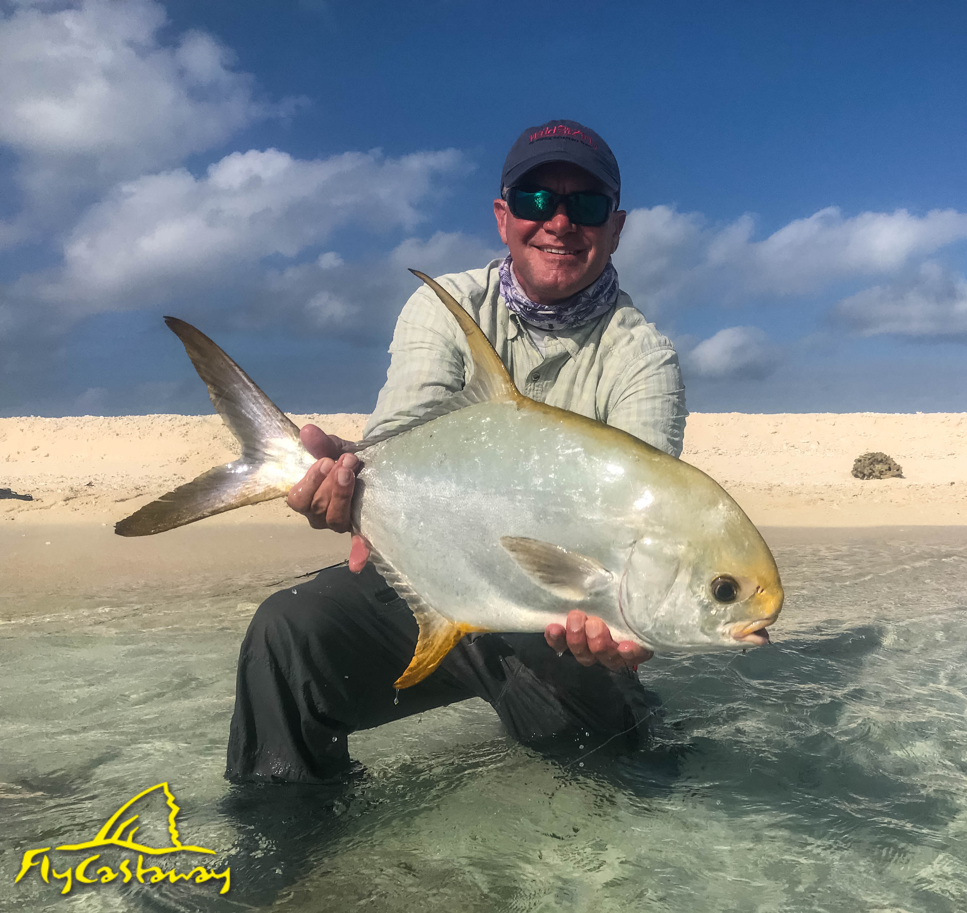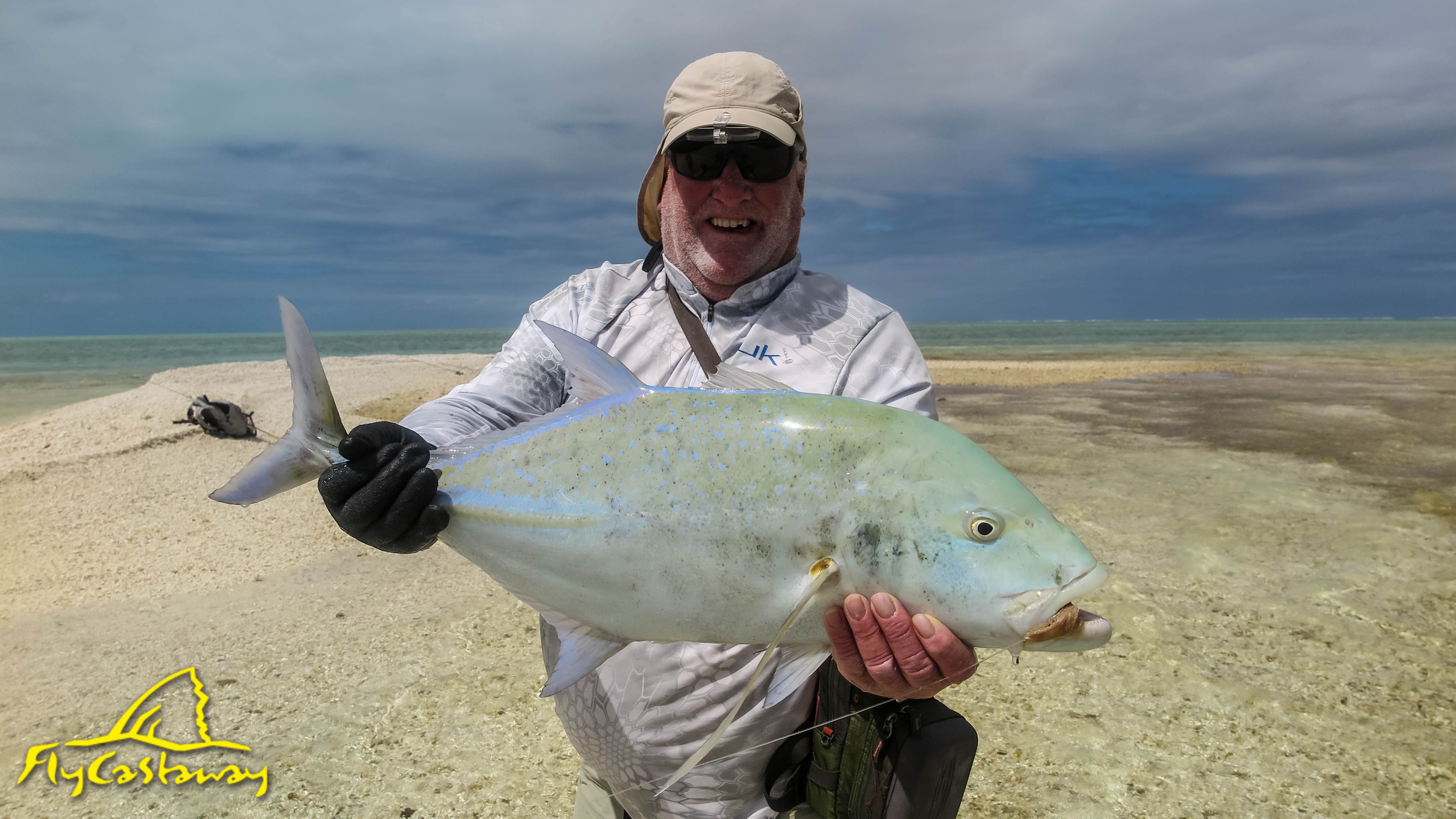 High numbers of Indo Pacific Permit continued to be seen on a daily basis, all of our guests enjoying plenty of opportunities during their week. Permit being permit are however never easy to convince and despite many rejections and near misses, two fish did make it to the net before the week came to a close, both fish were landed by Steve, his first a solid 10lb fish that crushed the fly while feeding over some and his second a gorgeous 14lb fish that was spotted tailing over small patches of turtle grass on a large white sand flat. Congratulations Steve!
