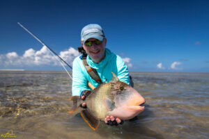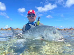 Our guests were treated to perfect conditions for skinny water bonefishing with a typical south-easterly wind resulting in cool ocean water flushing over the flats. With some of the variables on our side, we just needed the fish to swim and swim they did with loads of bonefish encountered in several different fly fishing scenarios. The skinny water bonefishing for large singles and doubles was undoubtedly the highlight of the week and produced multiple bones of the 7-8lb calibre. Matt was lucky enough to enjoy a session that delivered quintessential St Brandon’s style bonefishing where walk and stalk fly fishing for large singles was the order of things. He went on to land several specimens of 8 lb. Well done, Matt. The high tide period of each day also produced the goods as our group racked up impressive numbers while fishing for the large schools of bonefish that congregate in certain areas of the atoll. The sheer volume of fish seen and hooked was encouraging and gave us an indication of a thriving fishery and has us very excited for what the rest of the season might deliver on the bonefishing front!