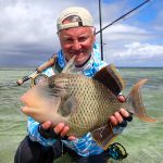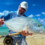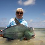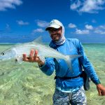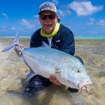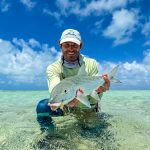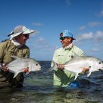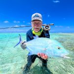 The permit fishing turned on in a positive way, and the fish were very receptive to the flies thrown their way. Solid numbers were found on the flats, ridges, and around islands, giving all our anglers great shots at the atoll’s permit. Everyone had opportunities to present little morsels to these elusive fish throughout the week. Much to the excitement of both guide Jarryd and guest angler Joerg, the permit obliged more than usual, and Joerg went on to land five permits in one day! A huge congratulations to Joerg for an outstanding day of permit fishing!