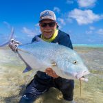 On the trevally front, it was a bit slow this week. We did, however, encounter a good number of bluefin around the islands and coral ridges, as well as a couple of GTs hanging around nurse sharks. The guests made some great shots, but unfortunately, only one bluefin made it to hand.