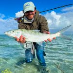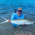 This week, we definitely saw more bonefish cruising the flats, both in small pods and as big singles. Many fish were spotted cruising over the flats and feeding in ankle-deep water, making for exciting visuals as the anglers managed to get into some good numbers of fish. The average size of the bonefish this week was between 5 and 7 lbs, with a couple of 8-lb bones making their way into the net.