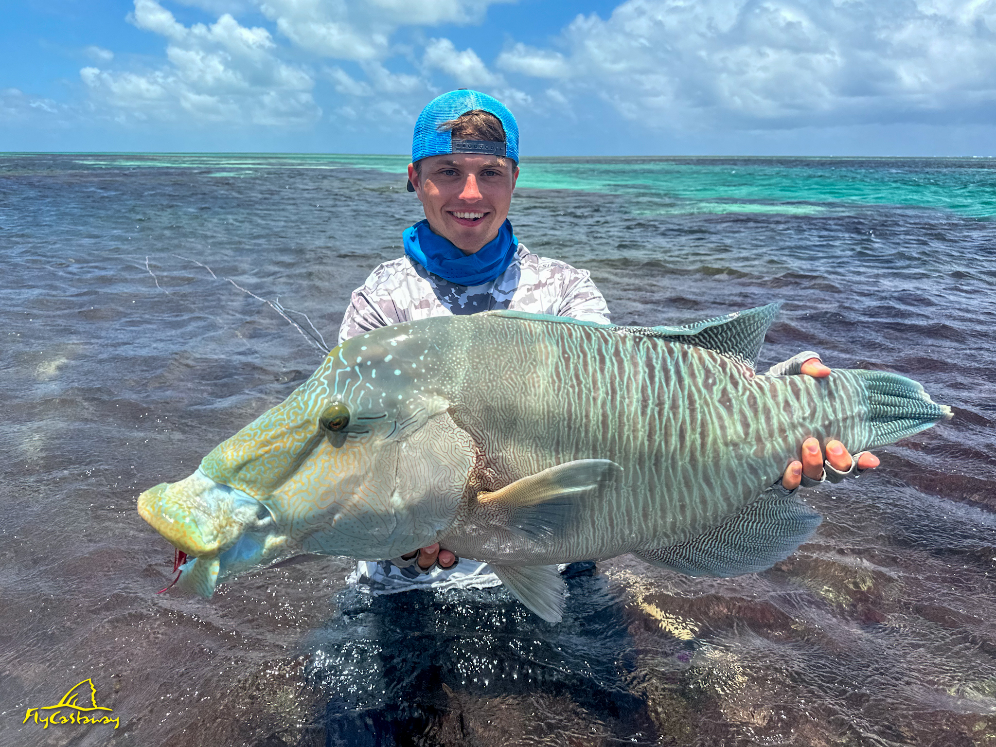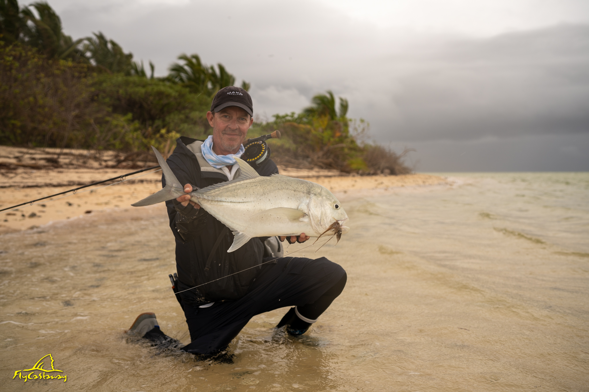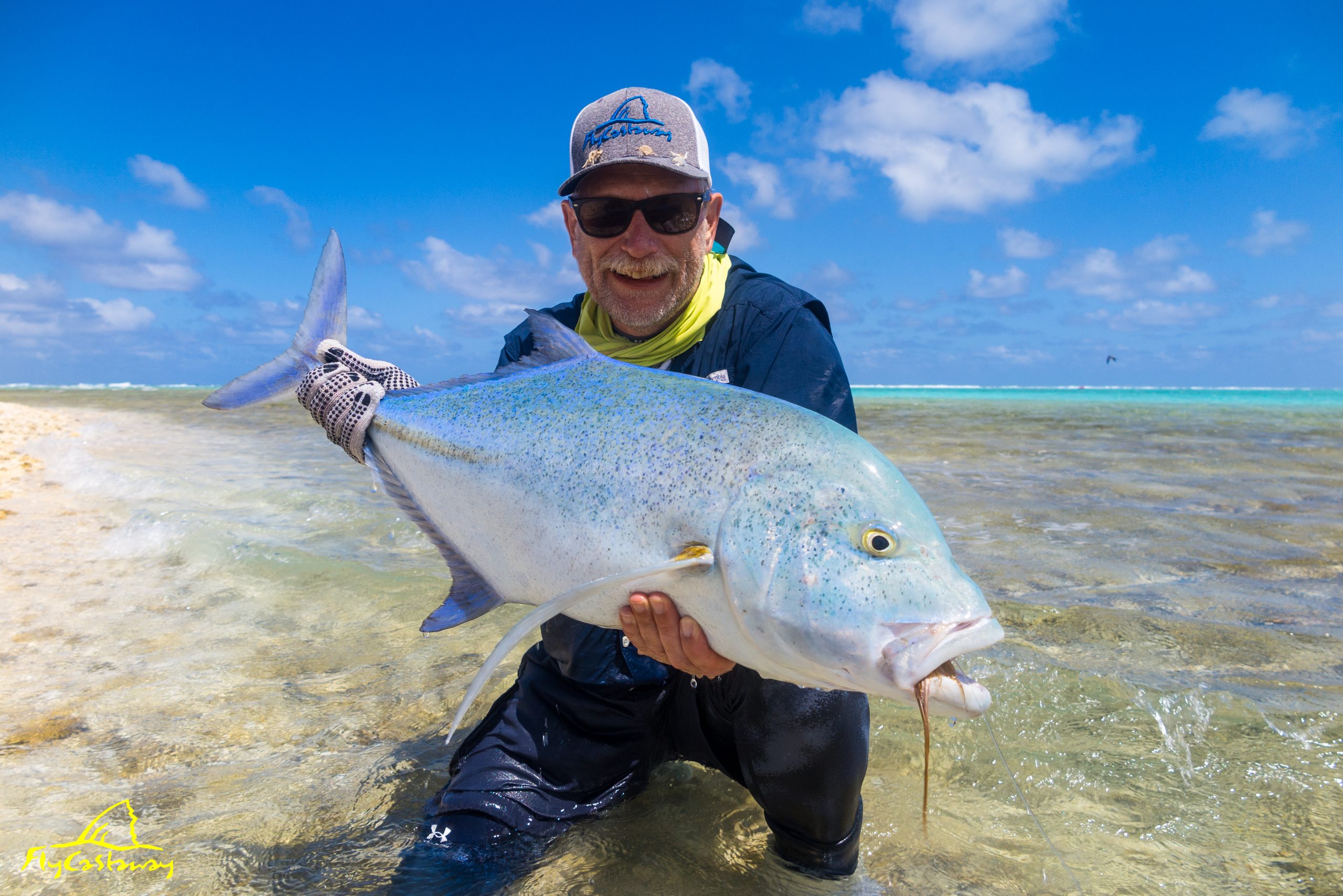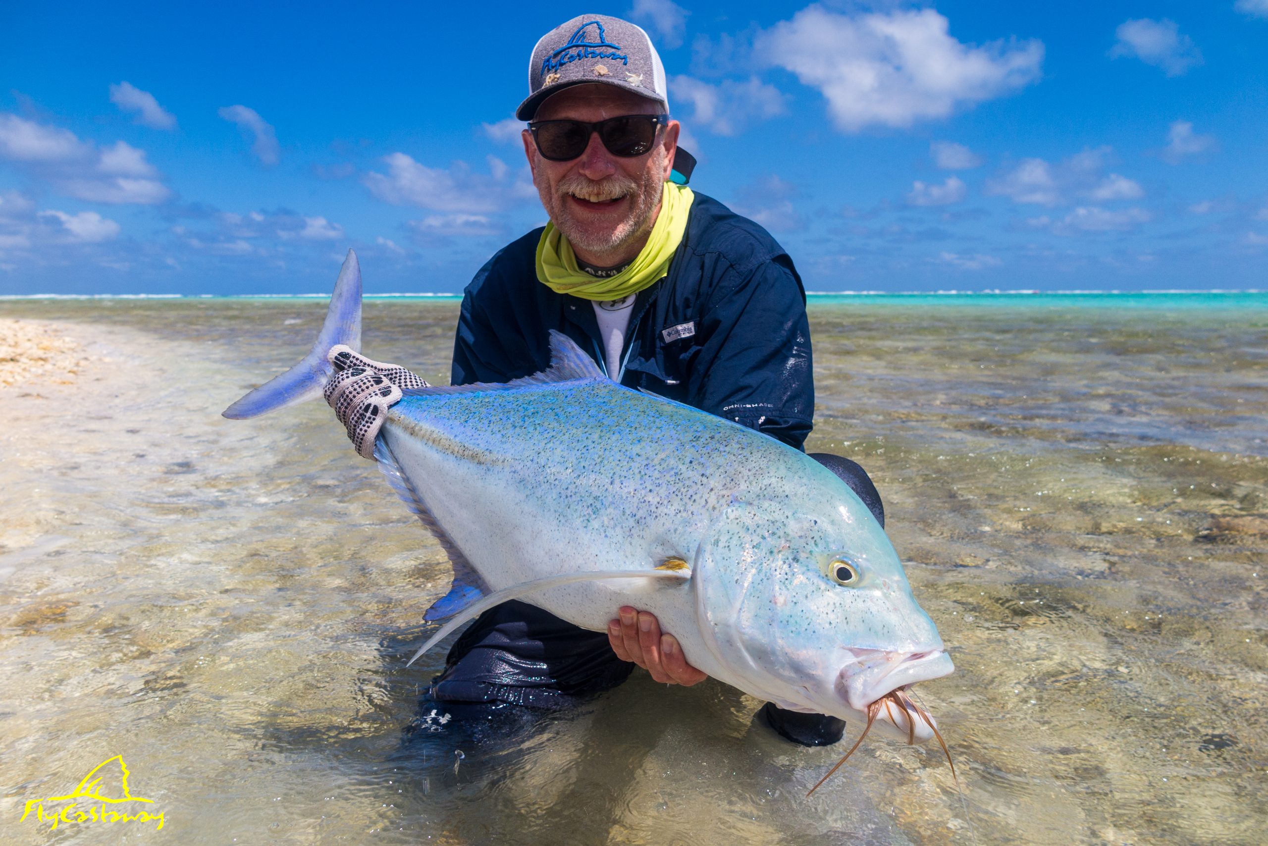 The permit fishing turned on in a positive way, and the fish were very receptive to the flies thrown their way. Solid numbers were found on the flats, ridges, and around islands, giving all our anglers great shots at the atoll’s permit. Everyone had opportunities to present little morsels to these elusive fish throughout the week. Much to the excitement of both guide Jarryd and guest angler Joerg, the permit obliged more than usual, and Joerg went on to land five permits in one day! A huge congratulations to Joerg for an outstanding day of permit fishing!