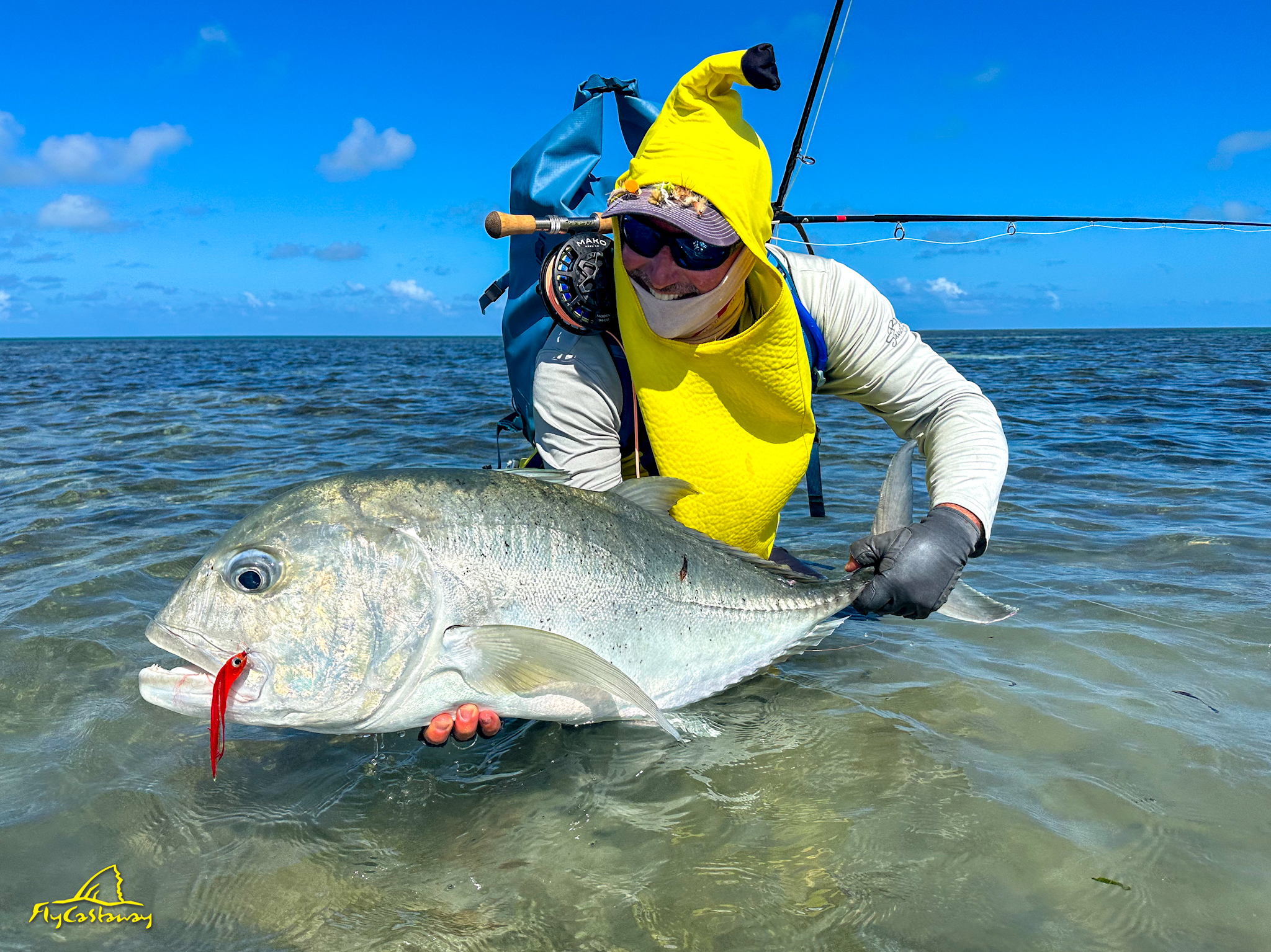On the trevally front, it was a bit slow this week. We did, however, encounter a good number of bluefin around the islands and coral ridges, as well as a couple of GTs hanging around nurse sharks. The guests made some great shots, but unfortunately, only one bluefin made it to hand.