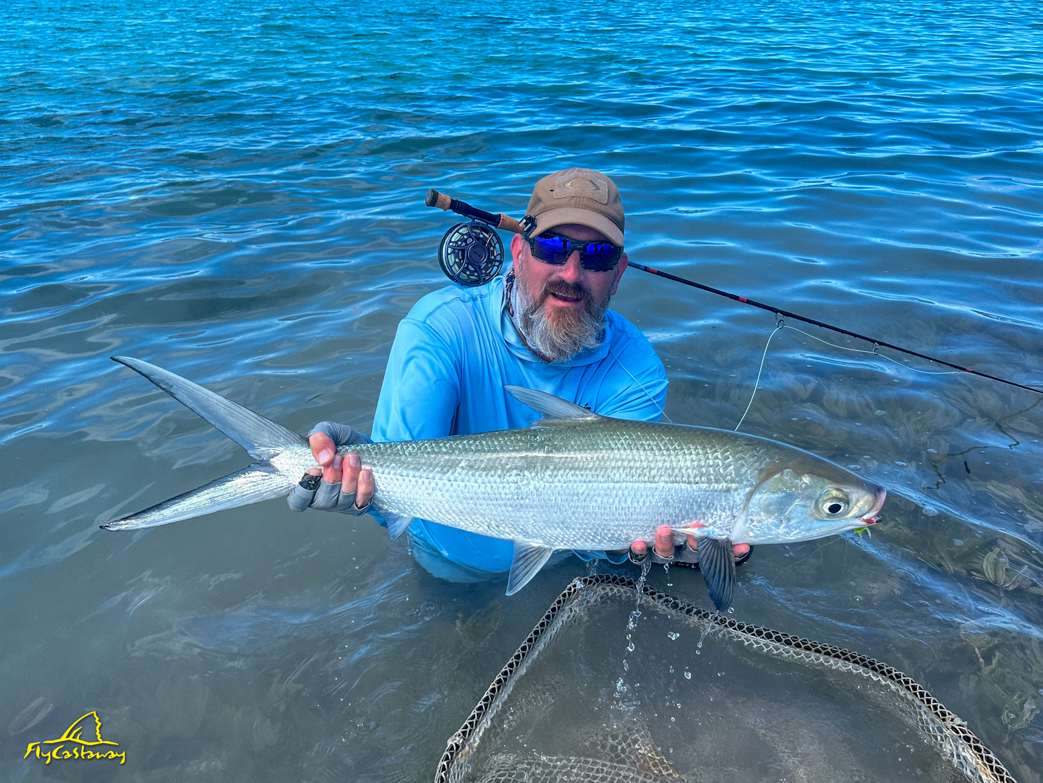 This week, we definitely saw more bonefish cruising the flats, both in small pods and as big singles. Many fish were spotted cruising over the flats and feeding in ankle-deep water, making for exciting visuals as the anglers managed to get into some good numbers of fish. The average size of the bonefish this week was between 5 and 7 lbs, with a couple of 8-lb bones making their way into the net.